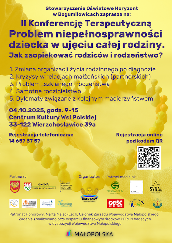 Stowarzyszenie Oświatowe Horyzont w Bogumiłowicach serdecznie zaprasza na II Konferencję Terapeutyczną.