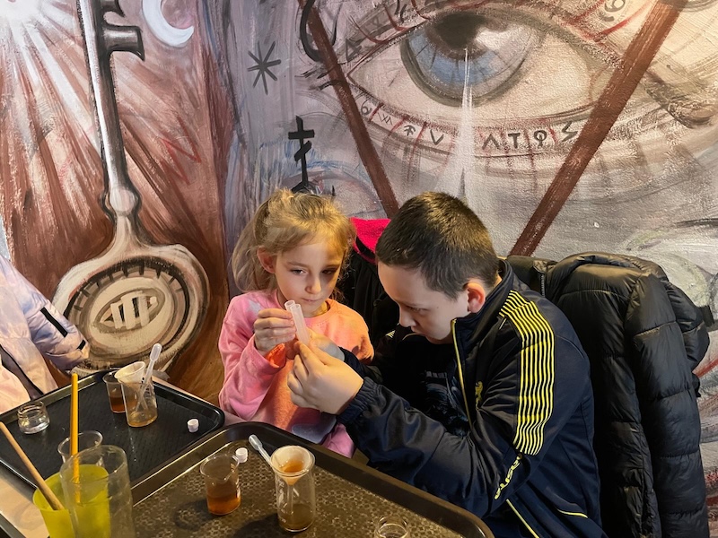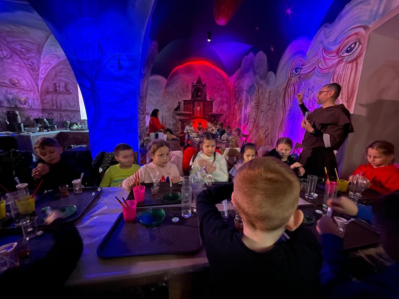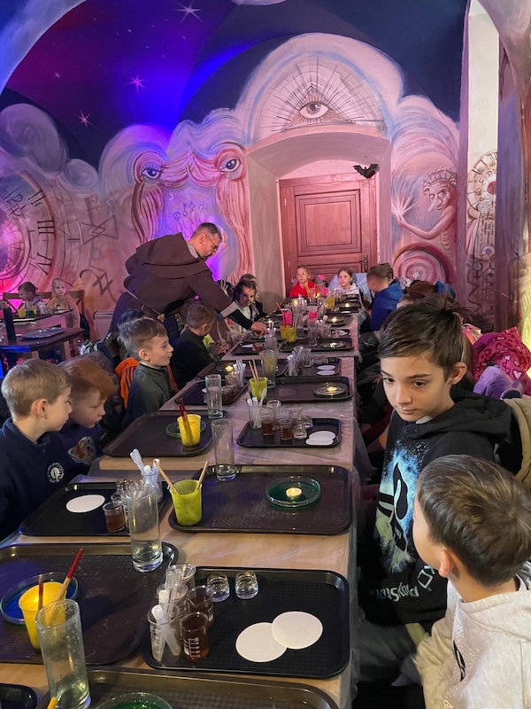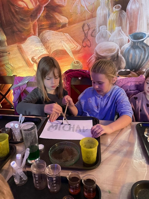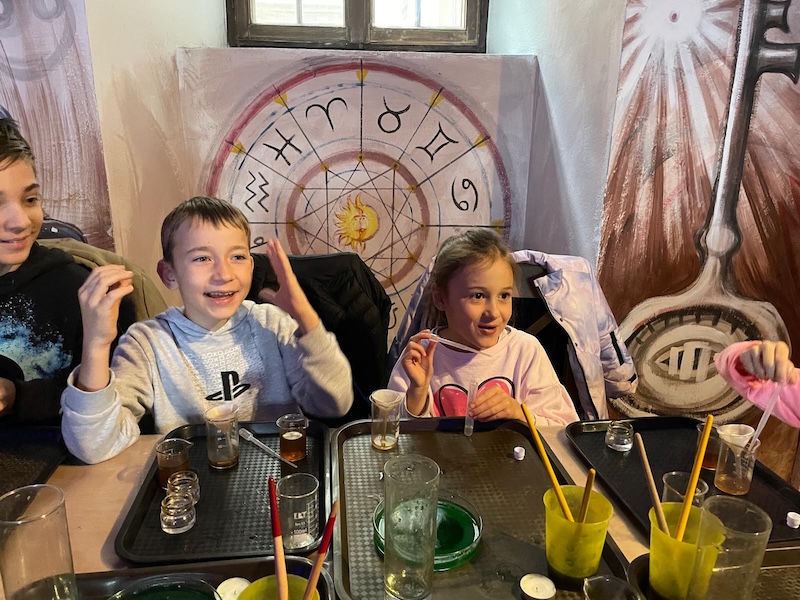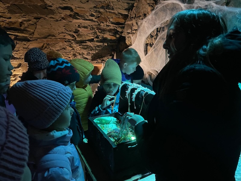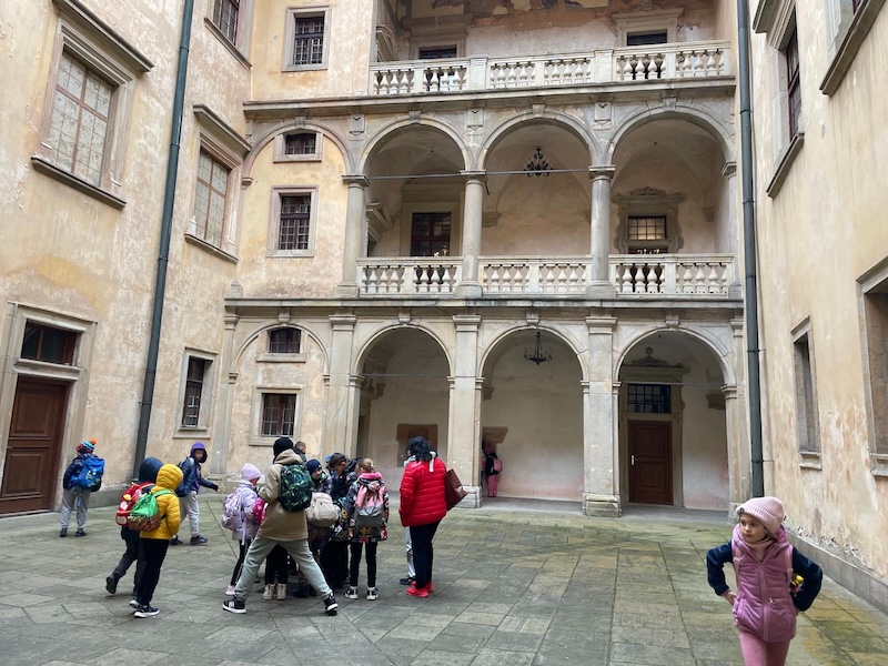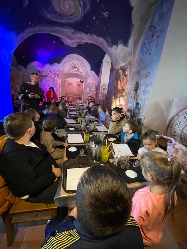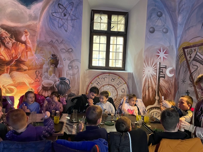 Dzisiaj dzieci z klas 1-3 wyruszyły do Nowego Wiśnicza, gdzie miały okazję poznać historię zamku, brały udział w "Poszukiwaniu zaginionego skarbu Barbary”, a w pracowni alchemika mogły spróbować swoich sił w dawnych eksperymentach. Pobyt w zamku rozpoczęliśmy w tajemniczej scenerii pracowni alchemika, gdzie zostaliśmy przeniesieni do czasów, w których alchemia była sztuką niezwykłą. Warsztaty składały się z historycznej pogadanki połączonej z pokazem alchemicznego sprzętu i doświadczeń. Scenariusz warsztatów został tak opracowany, by dzieci zdobyły nie tylko wiedzę historyczną, ale również ćwiczyły umiejętności praktyczne. Następnie wzięliśmy udział w „Poszukiwaniu zaginionego skarbu Barbary”, w trakcie której poznaliśmy zamek, legendy wiśnickie oraz słowiańskie baśnie, trenowaliśmy spostrzegawczość, umiejętność logicznego myślenia i pracę w grupie. Każde z dzieci, za pomoc w znalezieniu skarbu otrzymało od Barbary amulet na szczęście. Na koniec pobytu odwiedziliśmy „Bastion VR”. Dzięki nowoczesnej technologii okularów VR każde dziecko mogło zobaczyć zamek z zupełnie innej perspektywy – oczami nietoperza, który jest symbolem zamku w Nowym Wiśniczu.