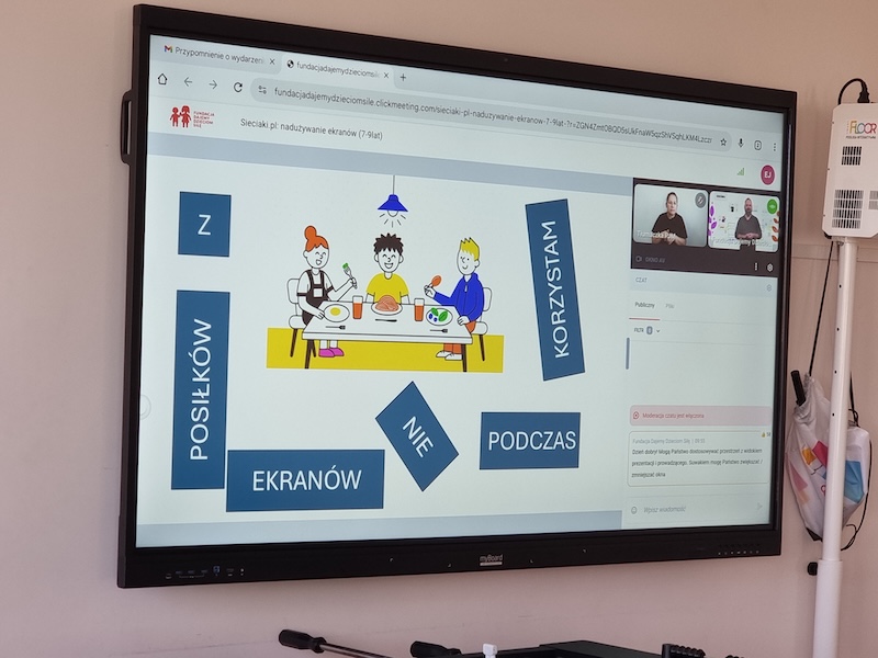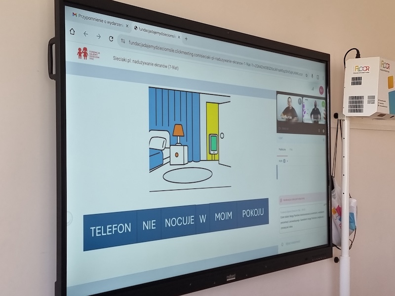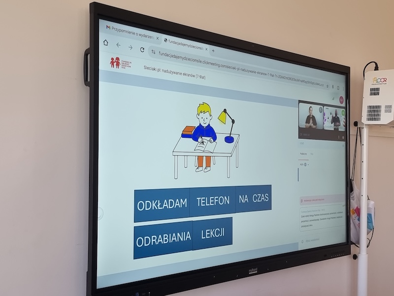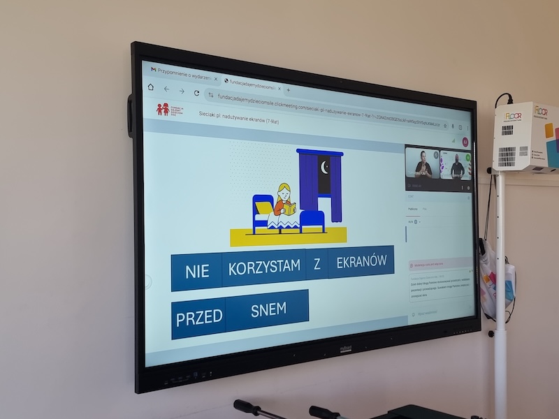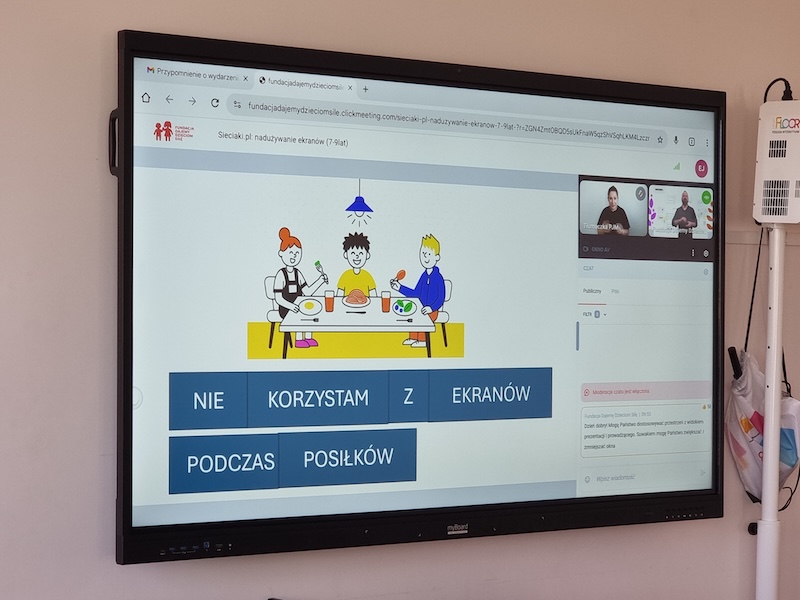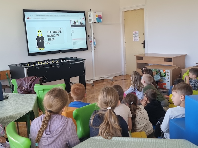 Dziś, w ramach Kampanii „Dzieciństwo bez przemocy”, odbyła się lekcja online dla uczniów klas I–III pt. „Sieciaki.pl — Nadużywanie ekranów”.