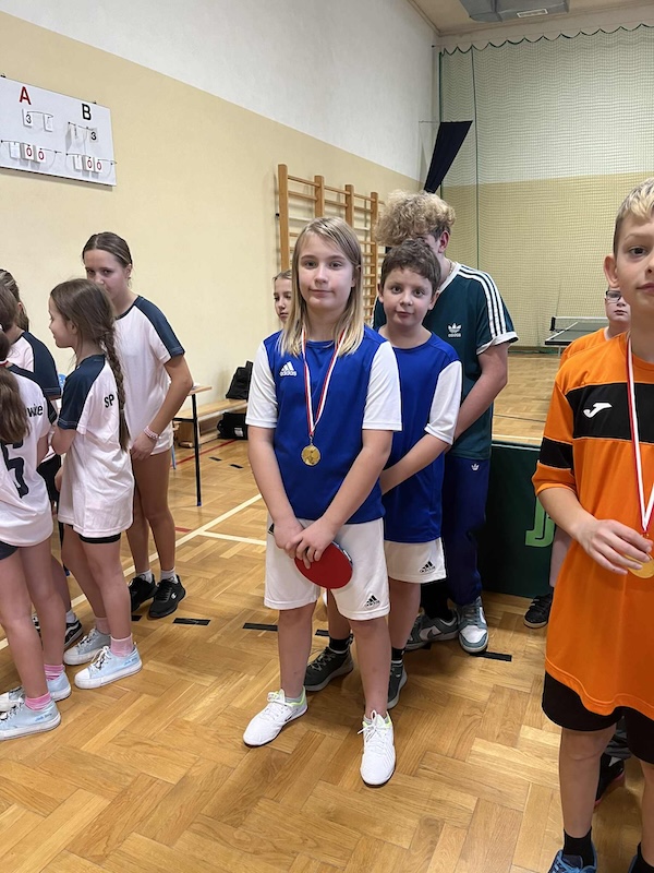 W dniach 21 - 22 listopada 2025r. w Mikołajowicach odbyły się Gminne Igrzyska Dzieci i Młodzieży w tenisie stołowym. Nasza uczennica Emilia Tarczoń zajęła I miejsce w kategorii rozgrywek młodszych dziewcząt, zdobywając tytuł Mistrzyni Gminy. GRATULACJE!