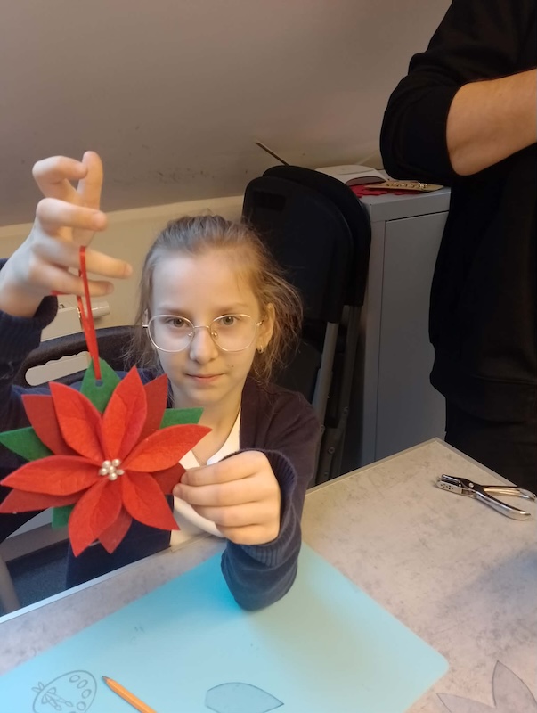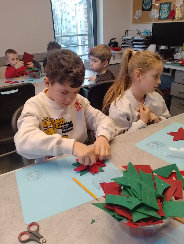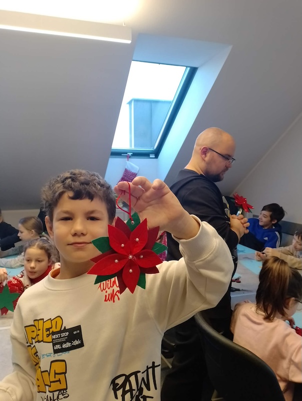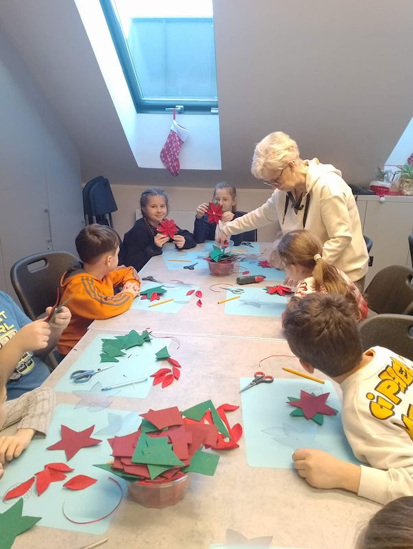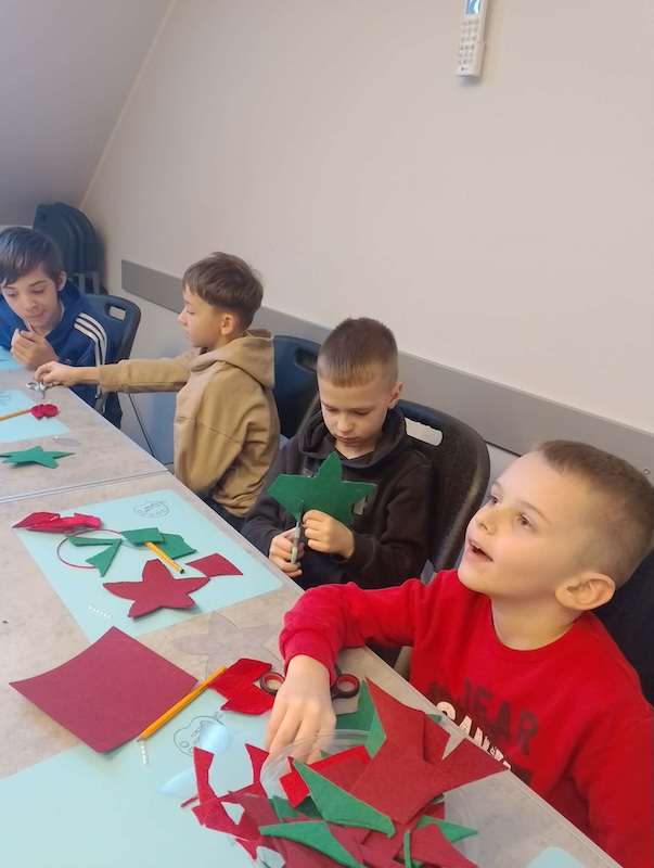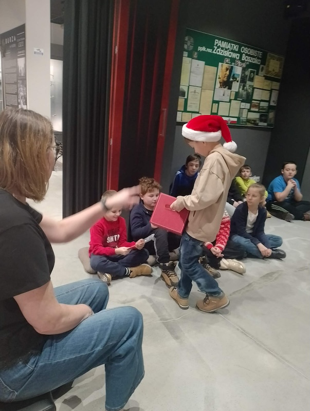 Uczniowie klas 1 - 3 po raz kolejny odwiedzili Regionalne Centrum Edukacji o Pamięci. Z okazji zbliżających się świąt Bożego Narodzenia uczestniczyli w bardzo ciekawej lekcji muzealnej „Wigilia w domu, wojsku, na wojnie”. Podczas omawiania tradycji bożonarodzeniowych ubierali "graficzną choinkę". Dowiedzieli się jak przeżywano ten wyjątkowy czas świąteczny podczas zaborów, I i II wojny światowej oraz jak wygląda Wigilia żołnierzy współcześnie. Na zakończenie wszyscy wykonali ozdobę choinkową – gwiazdę betlejemską.